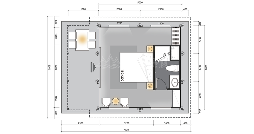 室内面积:23㎡ 结构材料:芬兰松木 国标阻燃,防潮防霉