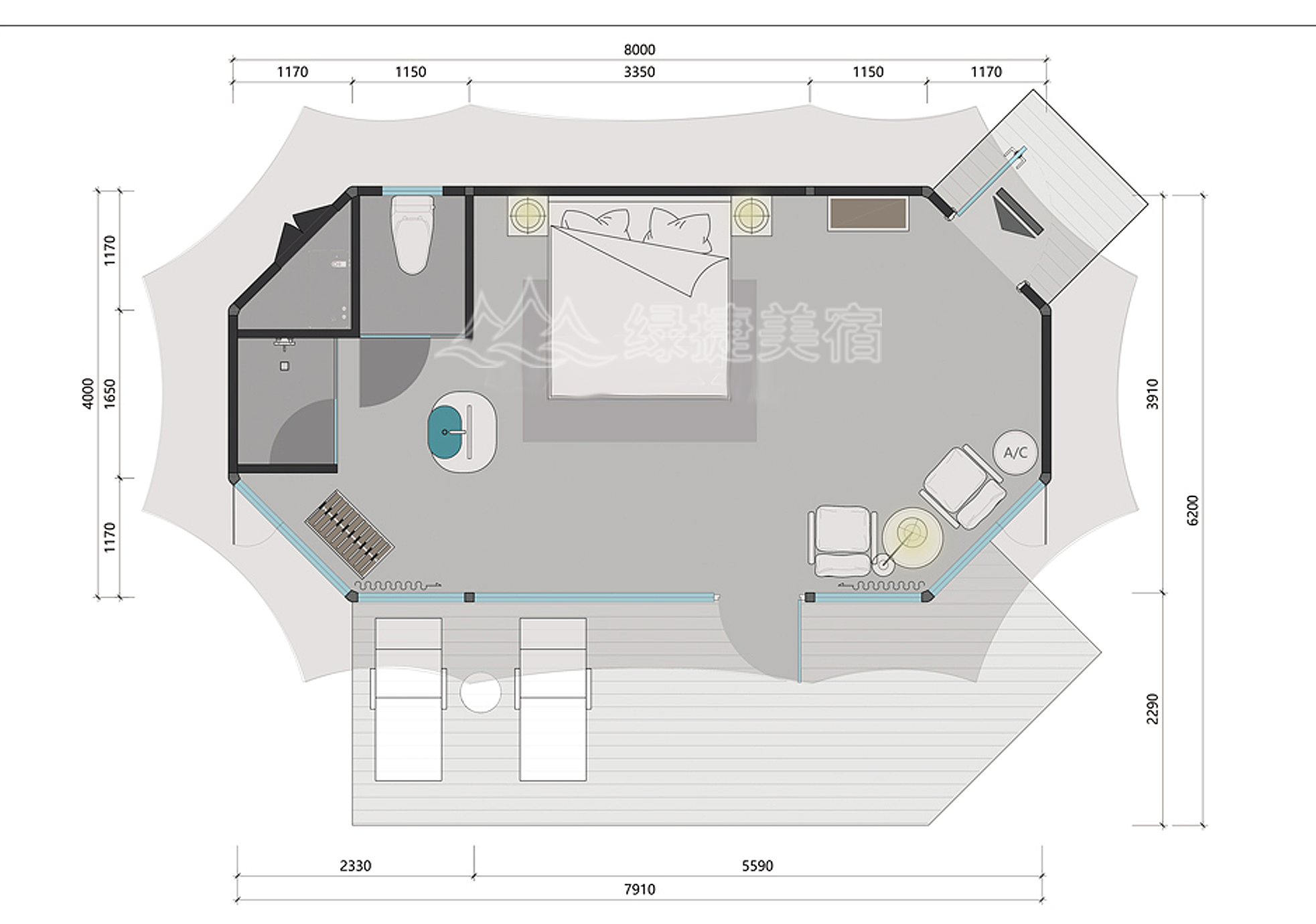 凭借 3.8m×7.8m 的主体尺寸优势,我们的帐篷内部拥有足够的布局空间:卧室、休息区、洗浴设施可按需灵活安排,且全程保持空间的宽敞舒适,让居住体验更显从容。而篷布的双层顶篷设计,更是兼顾了稳固性与实用性 —— 不仅结构更坚固,能承受更强风力与复杂自然环境的考验,助力帐篷长久使用;还支持根据气候、季节变化调整通风和隔热层,通过个性化调节,让帐篷在不同环境下都能提供适宜的居住感受。