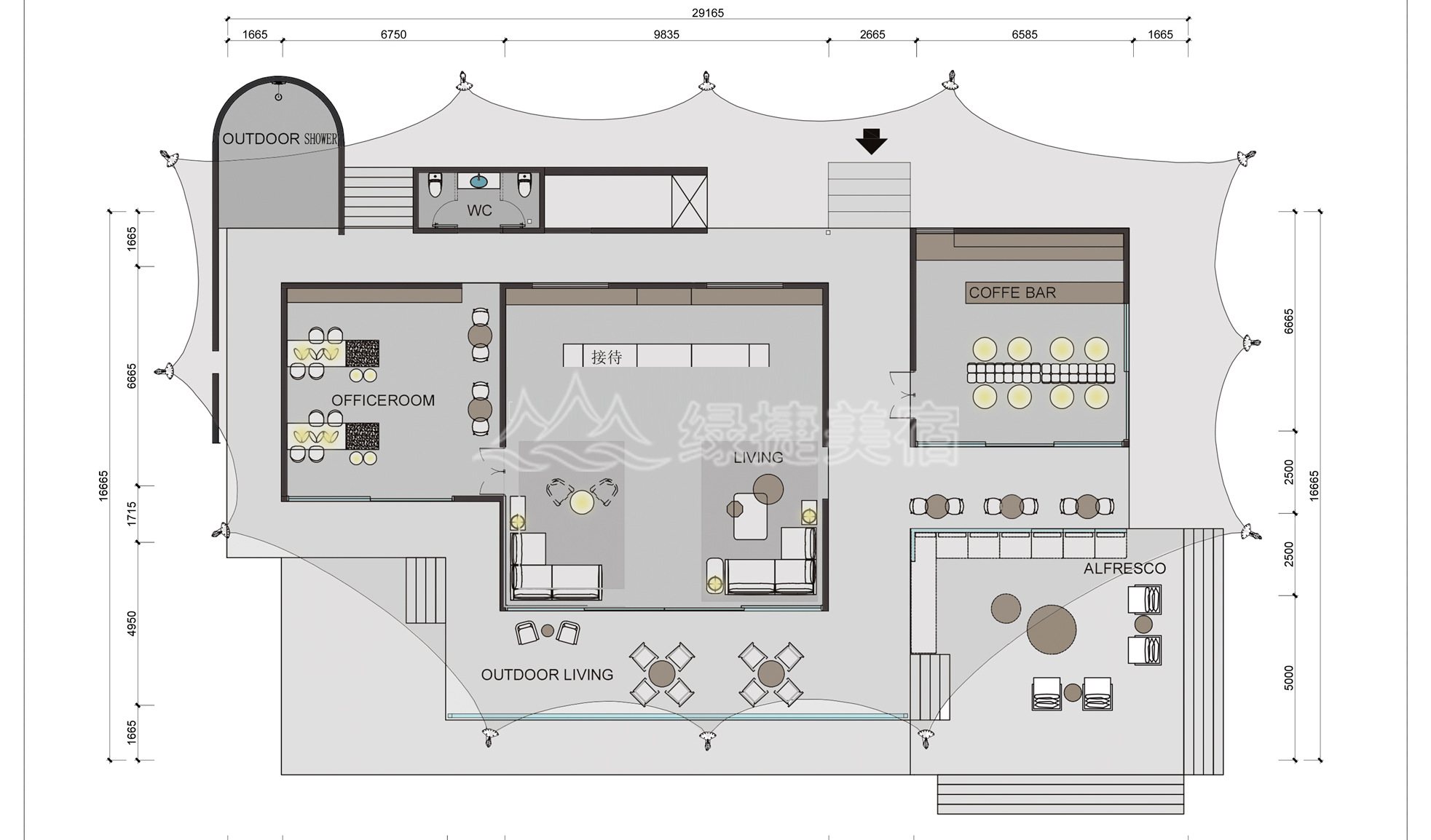 SYY200 豪华酒店帐篷,以隔音保温中空玻璃落地窗打造明亮舒畅空间,100mm 管径高强度钢材支柱抗恶劣气候,仿木色烤漆配双面覆膜胶合板统一风格,能融入自然景致。其环保便捷,适用于景区、民宿、野奢营地及温泉度假、水上乐园休息厅等多场景。